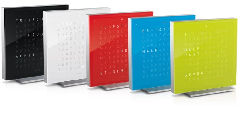 Zegar QLOCKTWO wskazuje czas typograficznie w ponad 20 językach (wybrane modele także w wersji polskiej).