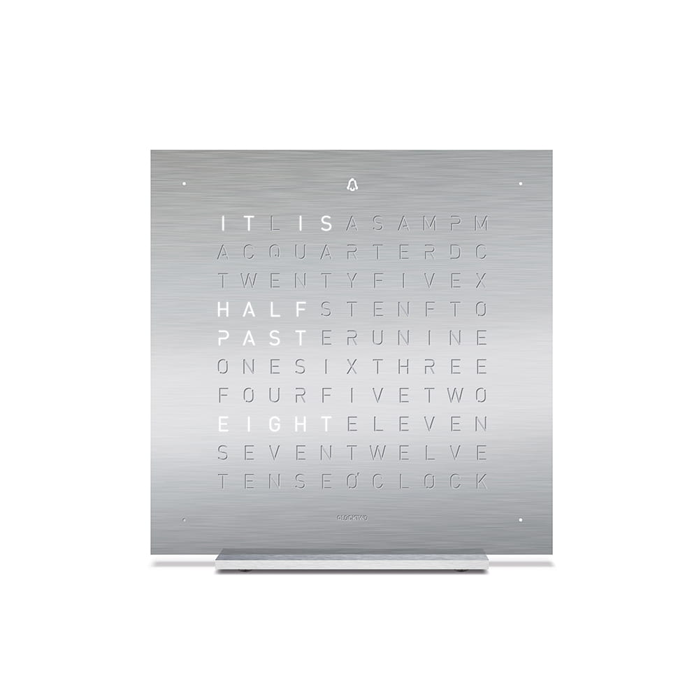 Zegar QLOCKTWO wskazuje czas typograficznie w ponad 20 językach (wybrane modele także w wersji polskiej).