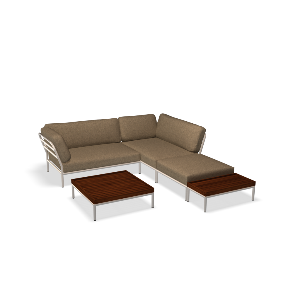 Zestaw ogrodowych mebli wypoczynkowych - narożnik z stolikami Biały :: LEVEL set02: 232x260 cm