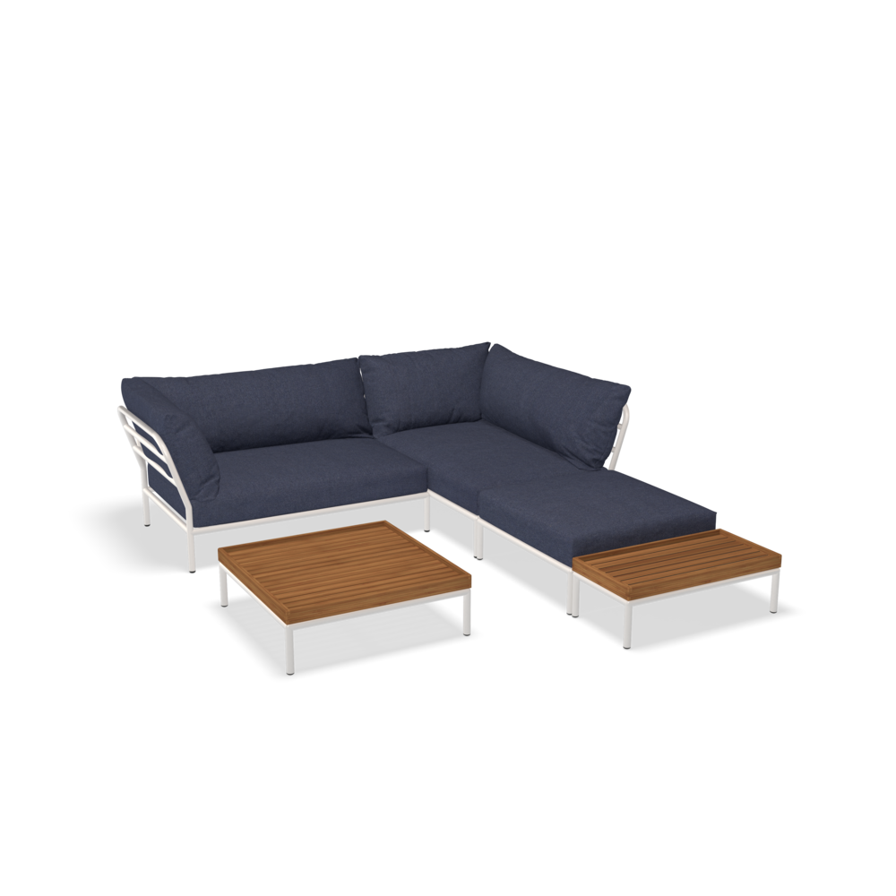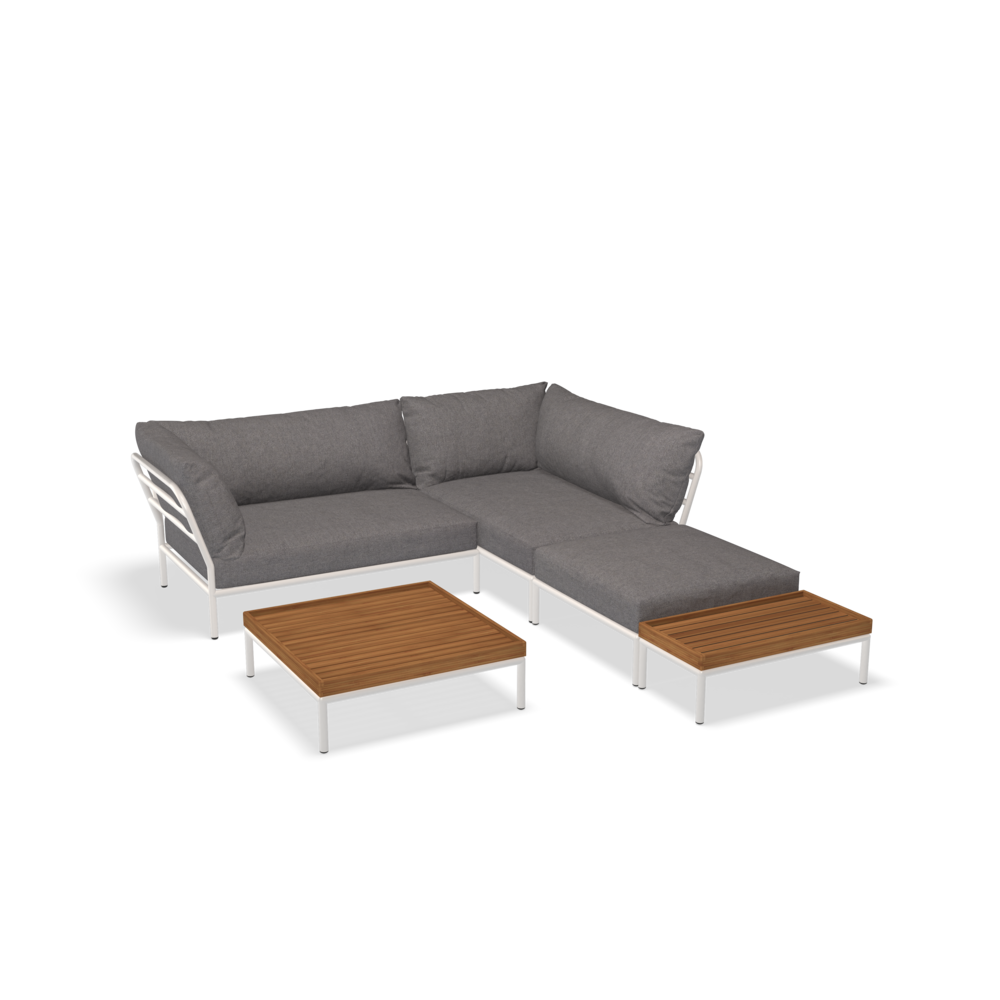 Zestaw ogrodowych mebli wypoczynkowych - narożnik z stolikami Biały :: LEVEL2 set02: 232x260 cm