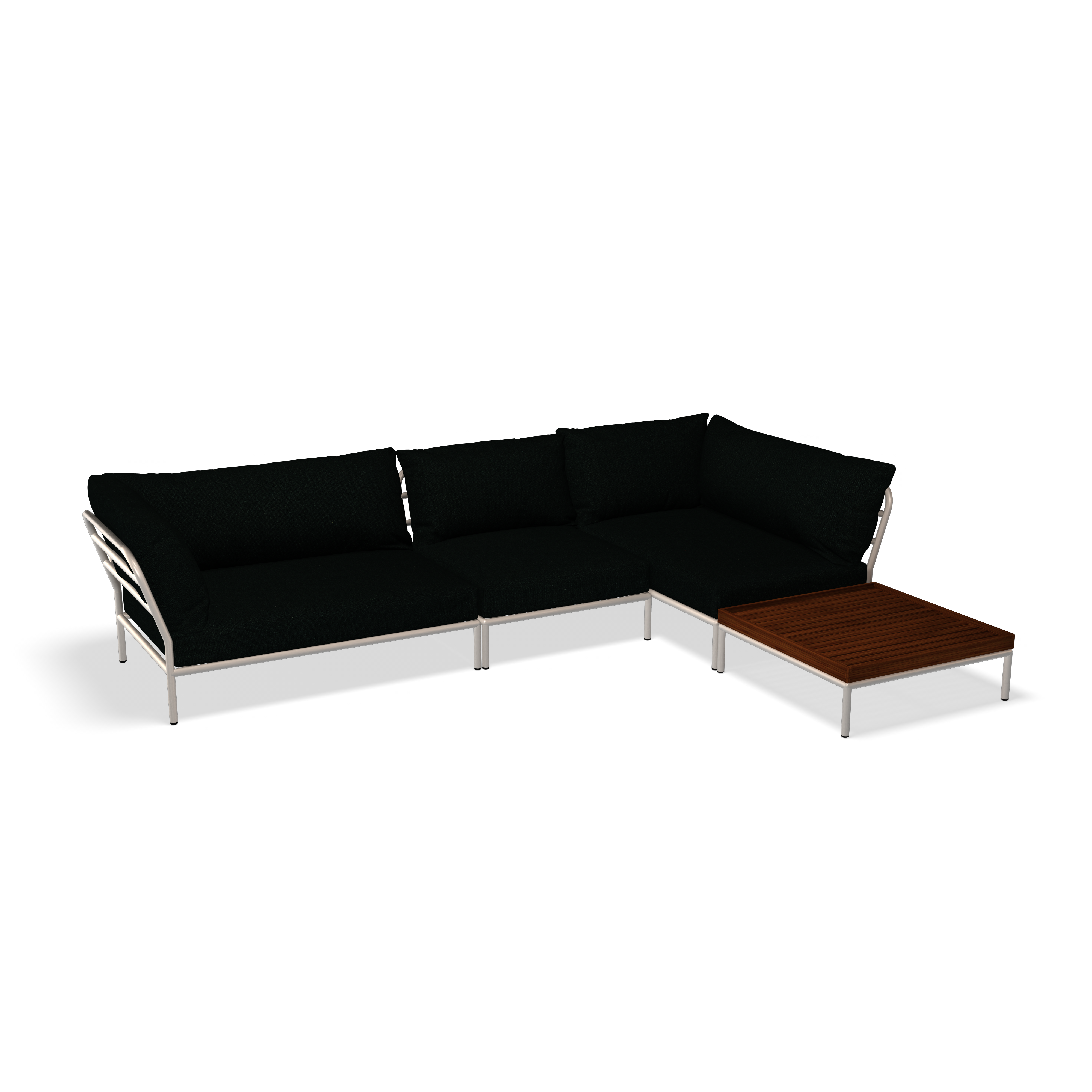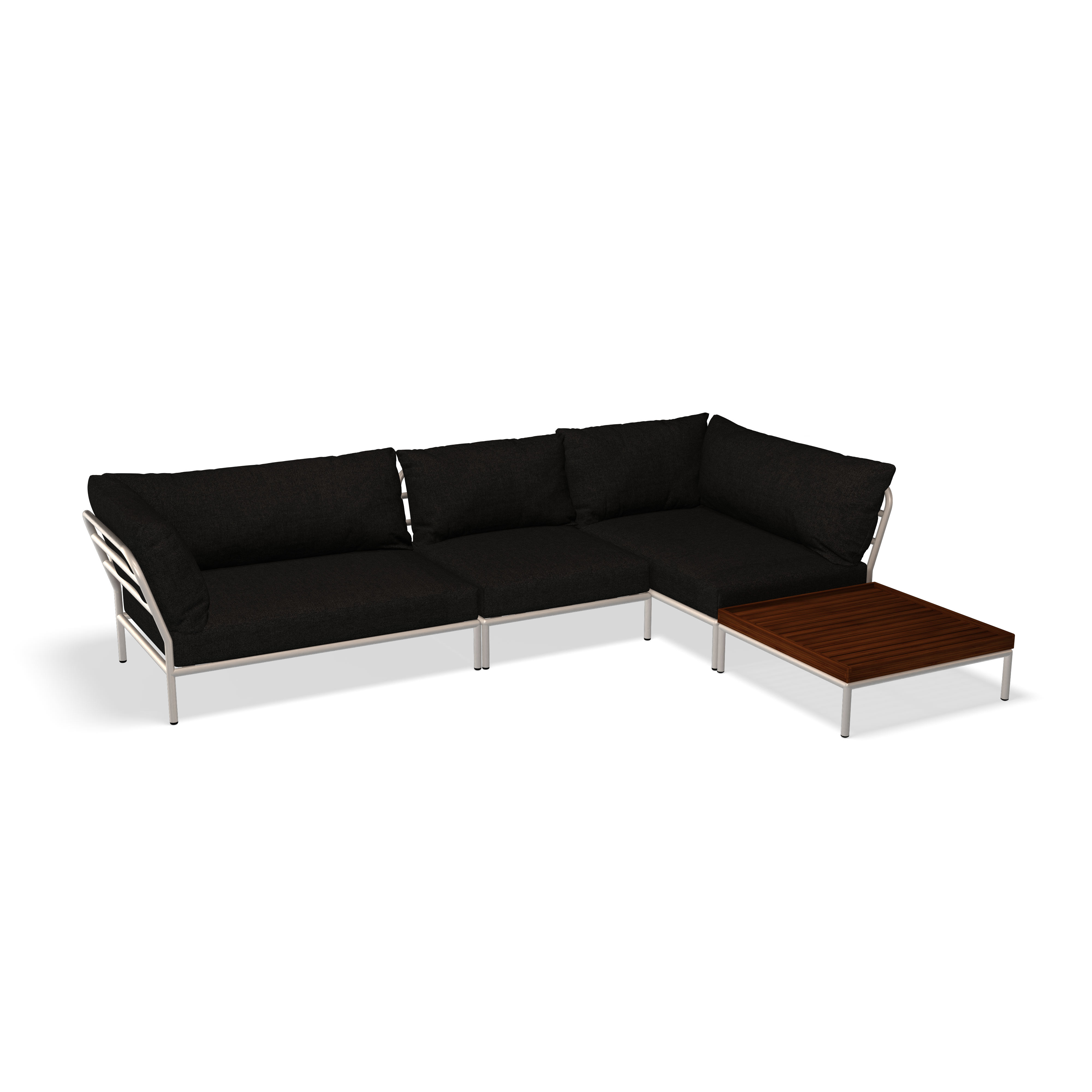 Ten zestaw w formie zestawu wypoczynkowego ma wymiary 139x259x160 cm i składa się z szezlonga, stolika kawowego 40x80 cm, elementu narożnego oraz pufy.