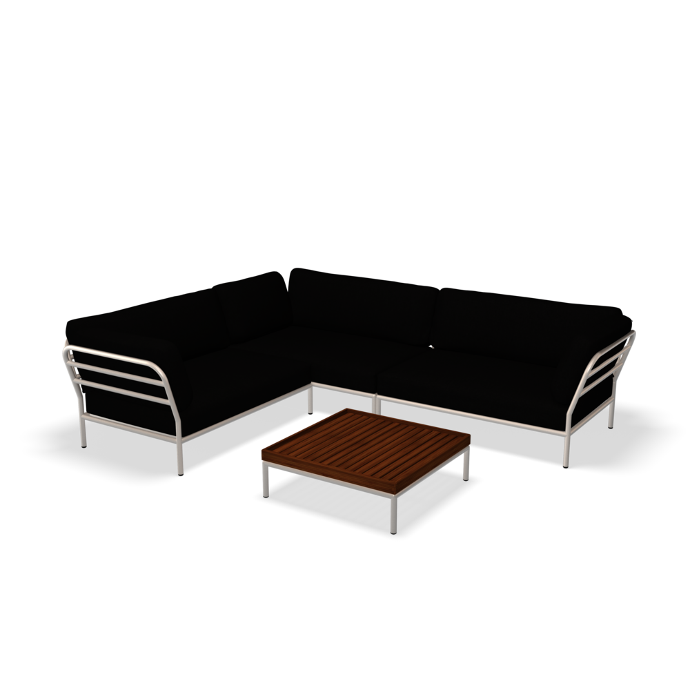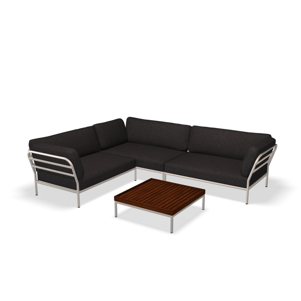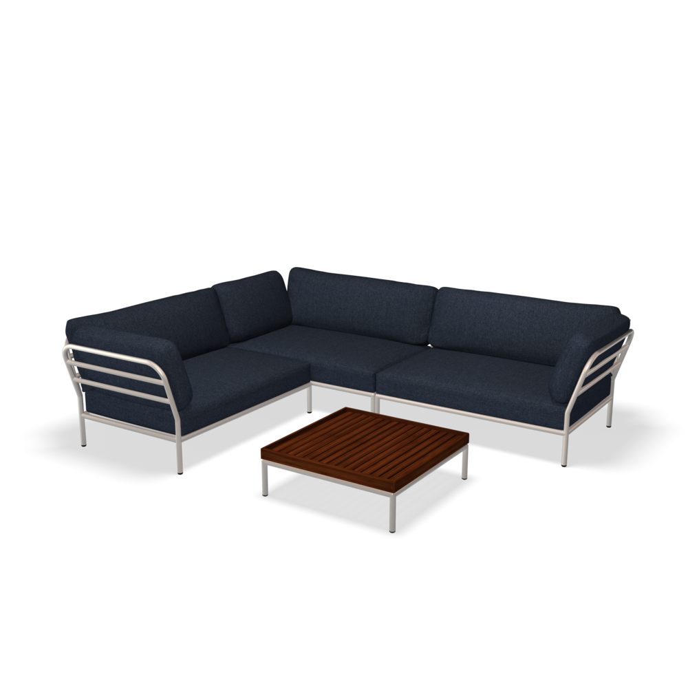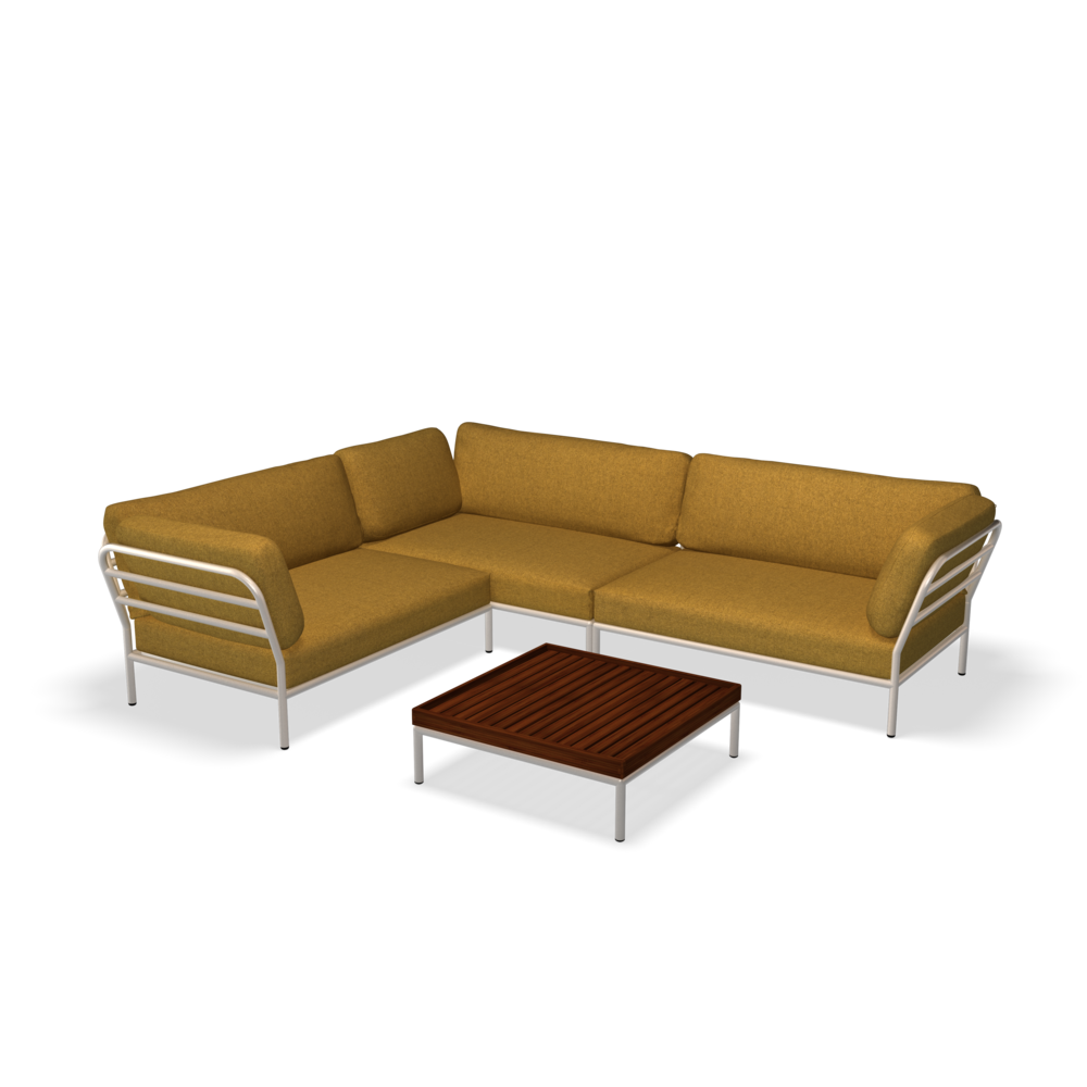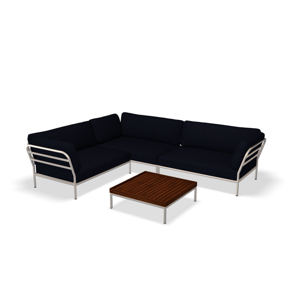 Ten zestaw w formie narożnika ze stolikiem kawowym 80x80 cm ma wymiary 278x219 cm i składa się z 3 elementów narożnych.