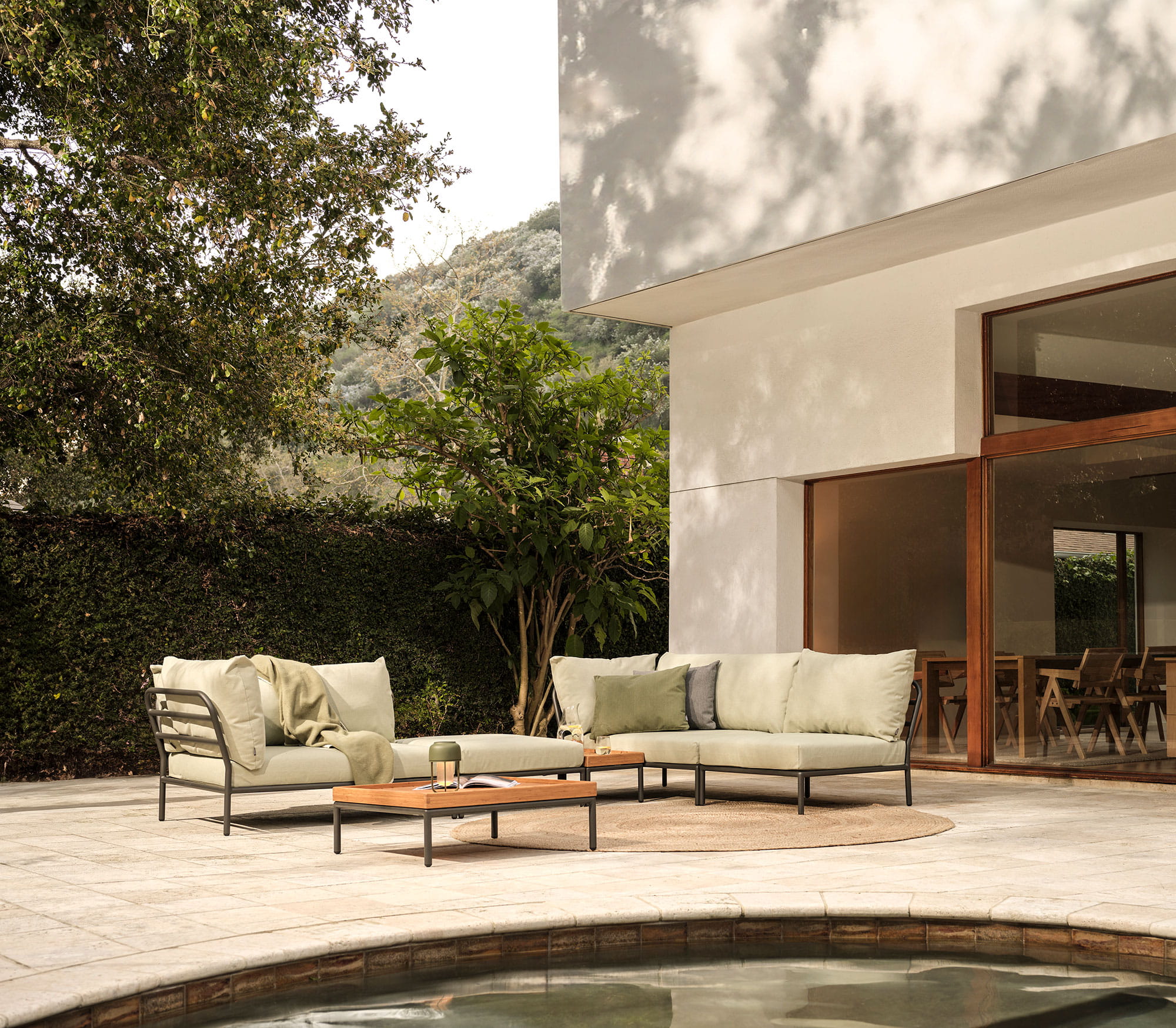 Lekka aluminiowa rama i miękkie poduszki zapewniają komfort i przyciągają obietnicą odprężającej atmosfery.
