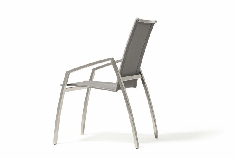 Krzesło ogrodowe ALCEDO wykonane jest z ramy z stali nierdzewnej szczotkowanej, co nadaje elegancji.