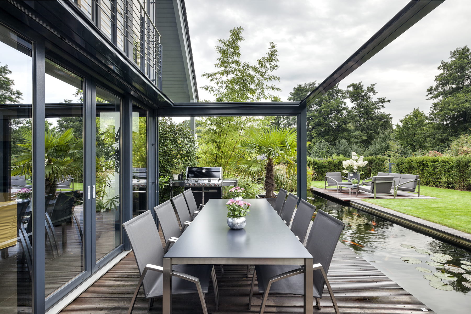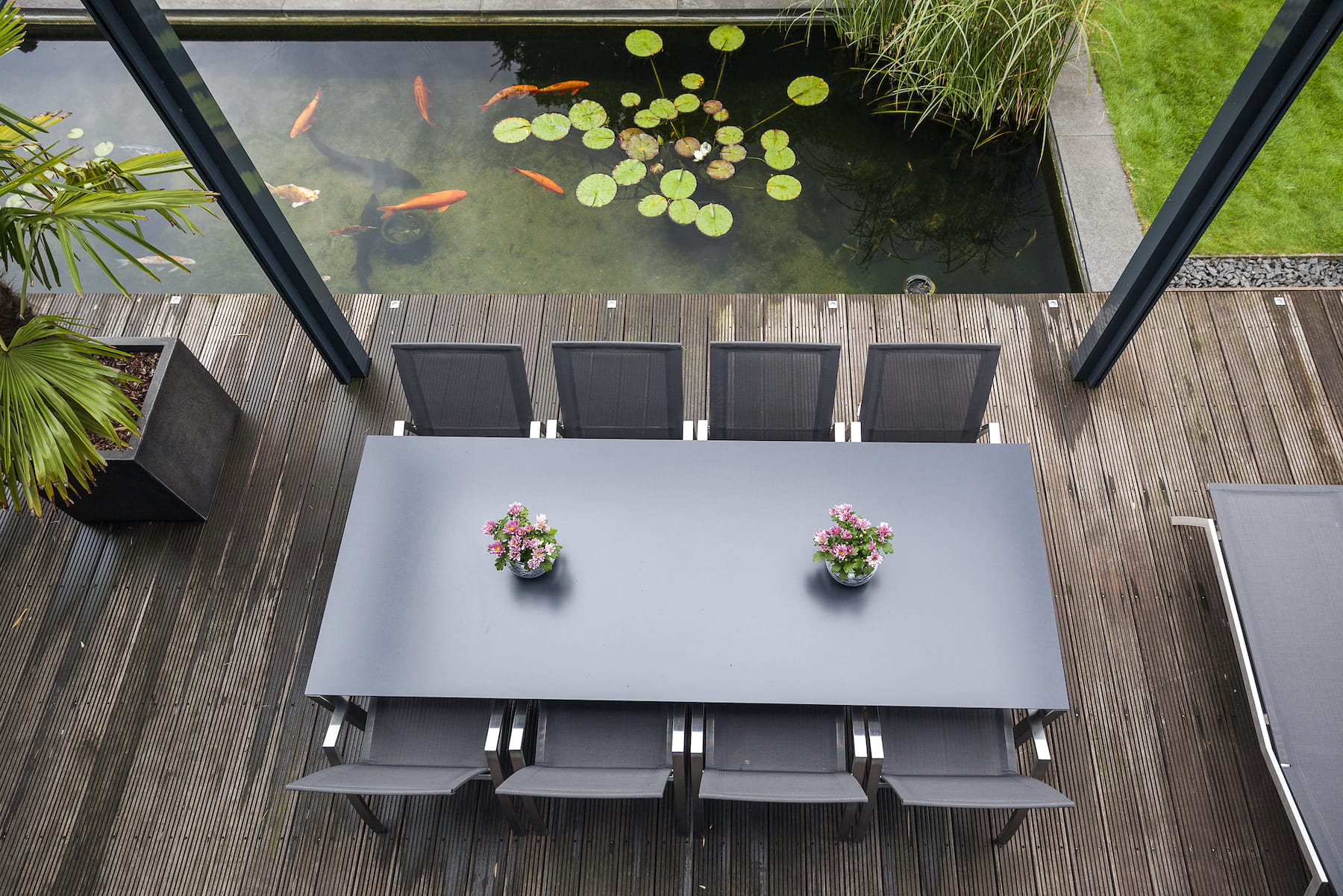 leżaków, stołów jadalnianych i strefy wypoczynkowej,